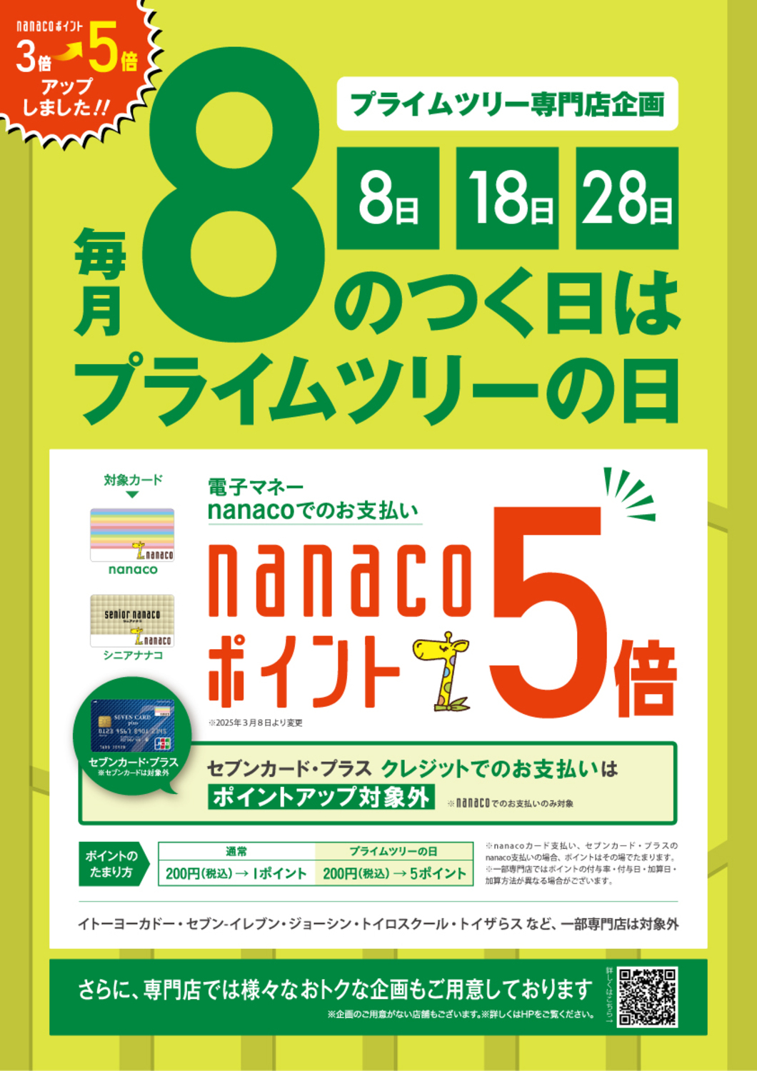 ※電子マネーnanacoがご利用いただける専門店が対象となります。但し、イトーヨーカドー・一部専門店は除きます。