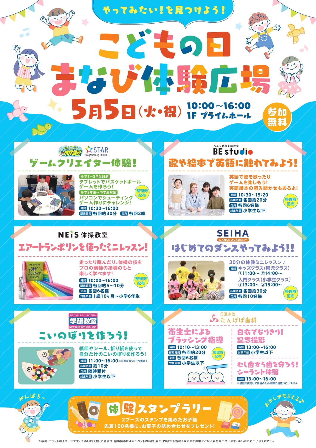 館内の各教室が提供する教育サービスを気軽に体験できる、『こどもの日まなび体験広場』を開催します!