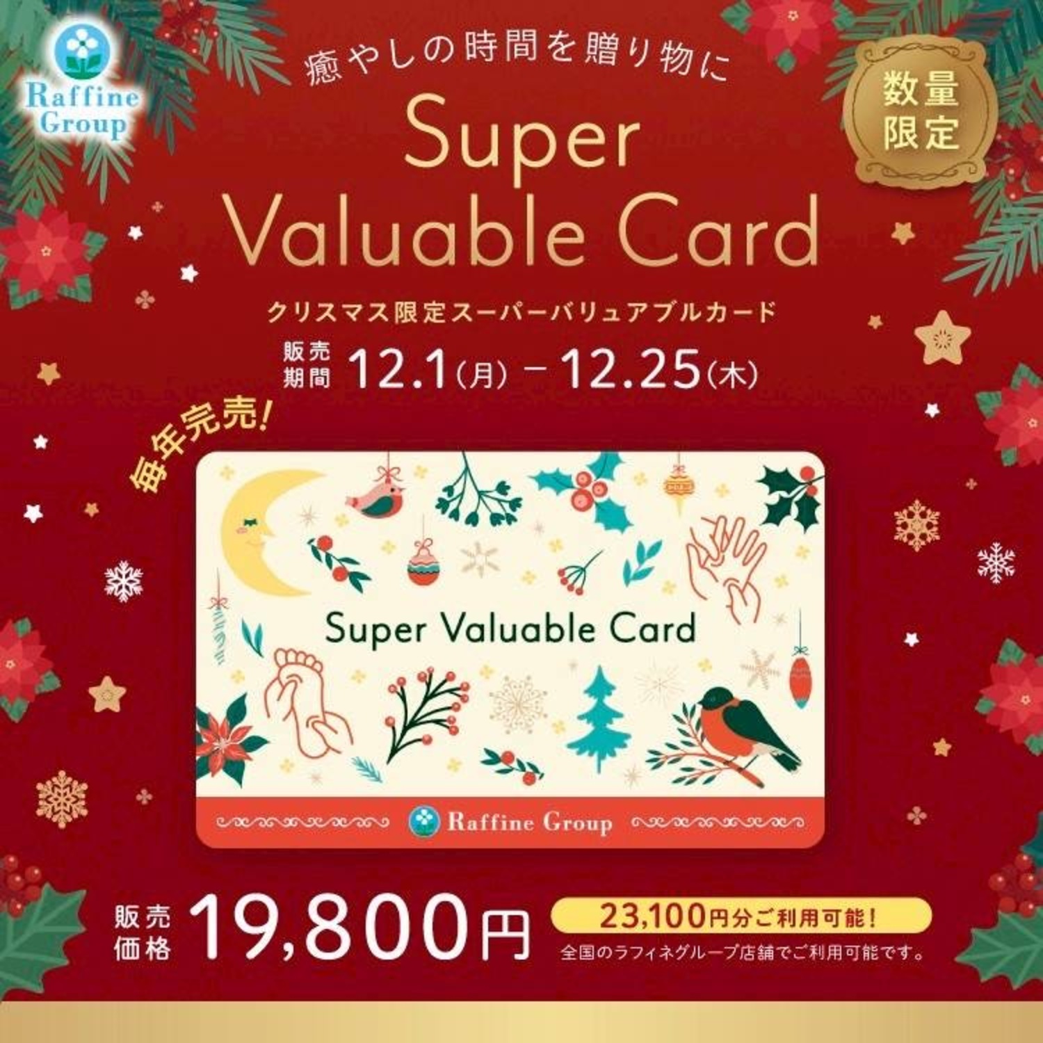 クリスマス限定のスーパーバリュアブルカードなら、全国のラフィネグループの店舗および公式通販ラフィネマルシェでご利用いただけます。