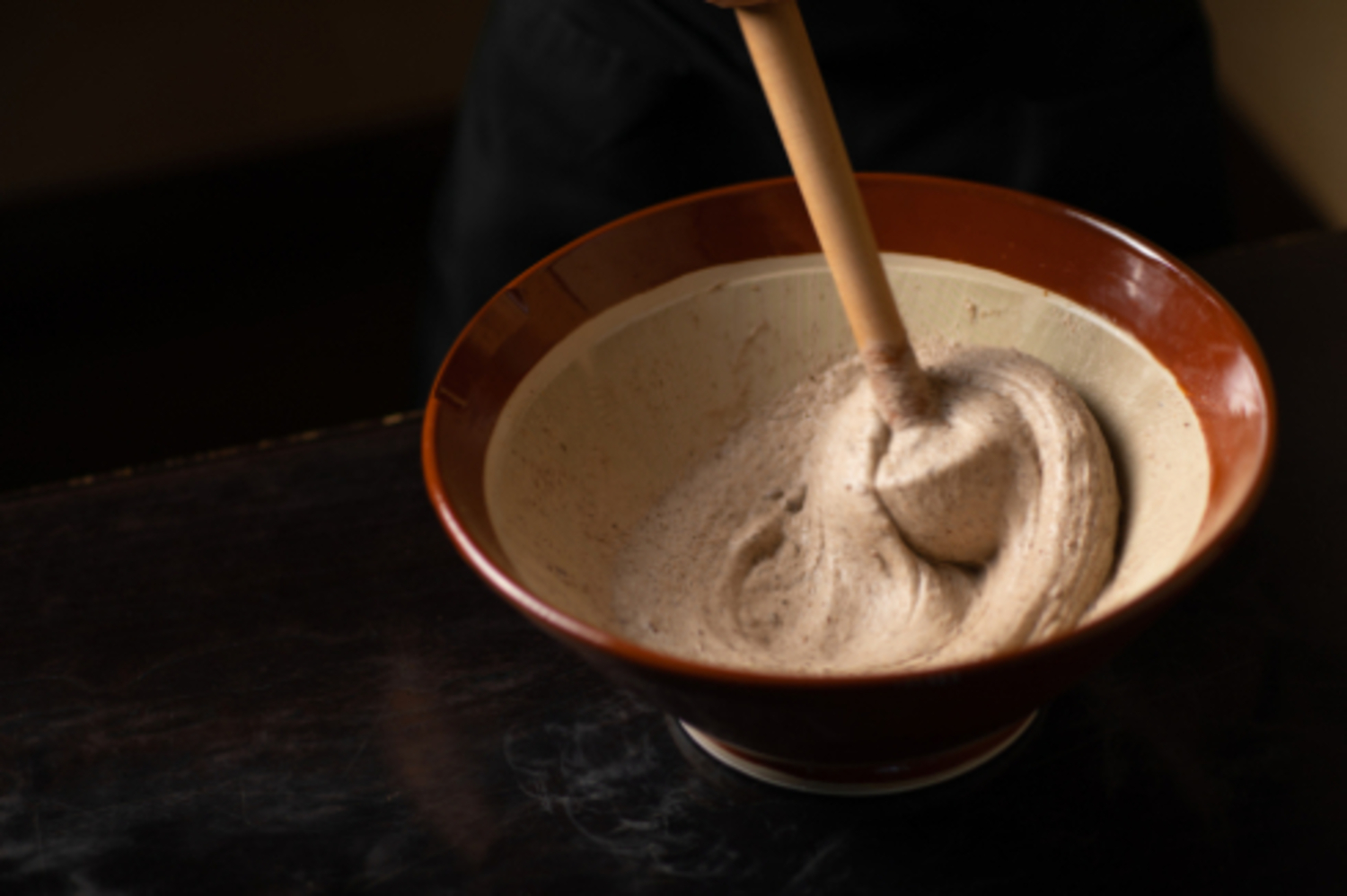自然薯とろろ汁は、山口県の契約農家さんが丹精込めて育てた自慢の自然薯を、店内の大きなすり鉢で丁寧に手擂りして仕上げています。山薬とも呼ばれる自然薯には、体に良い成分がたっぷり含まれています。この時期は旬ならではの香りや風味も格別です。