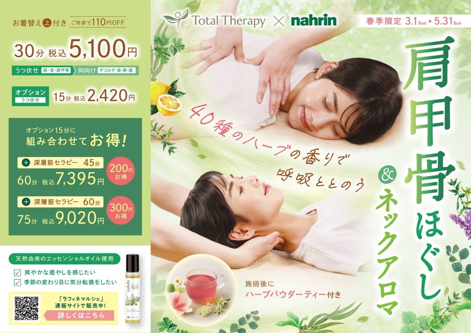 ①【オプション】 肩甲骨ほぐし&ネックアロマ 15分 2,420円(税込)