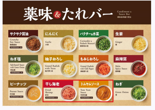 薬味は地鶏出汁によく合うトムヤムソース、干しエビを追加しました。