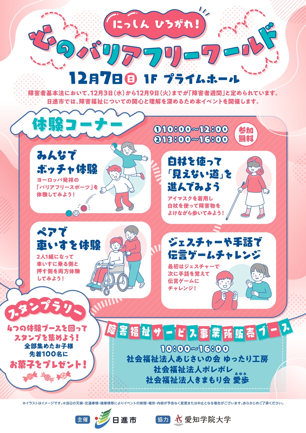 日進市では、障害福祉についての関心と理解を深めるため本イベントを開催します。