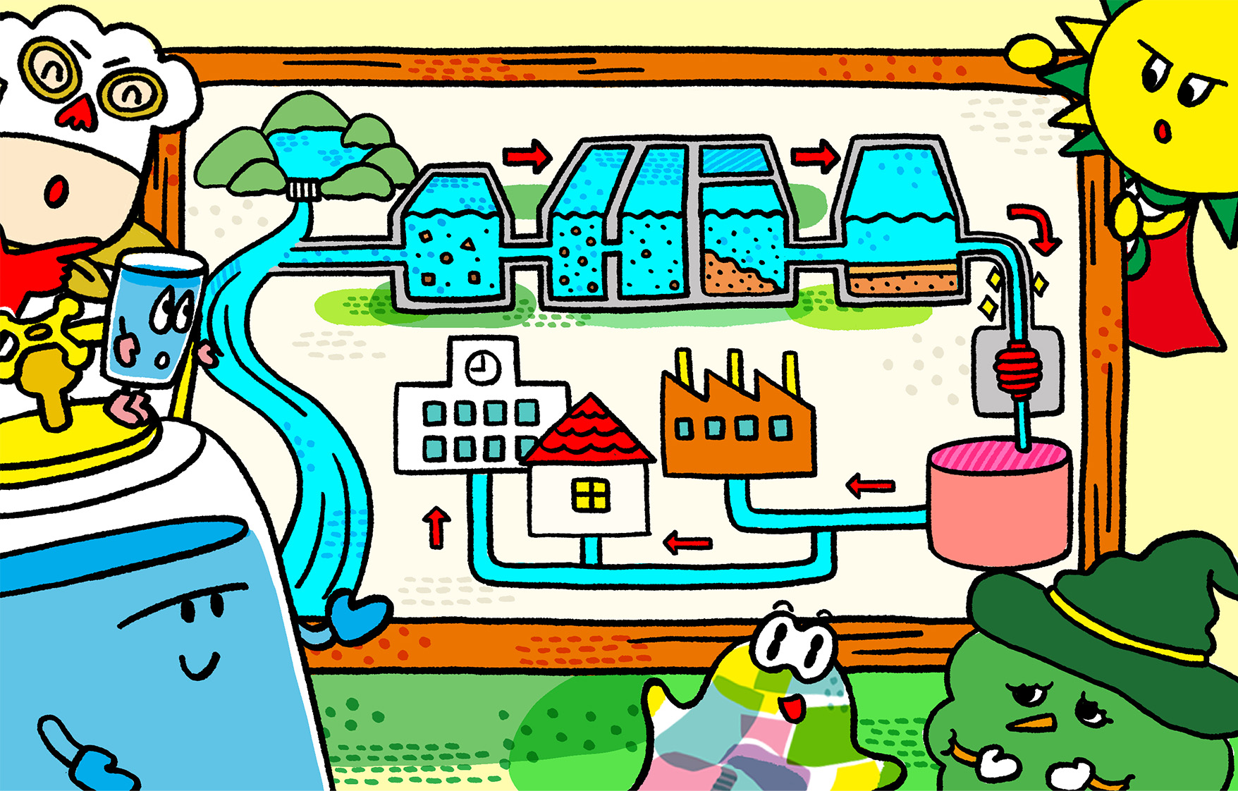 「そうなんだ。人が時間とお金をかけて、しっかりお水を きれいに しているんだよ。だから、お水は 大切につかってほしいな!」