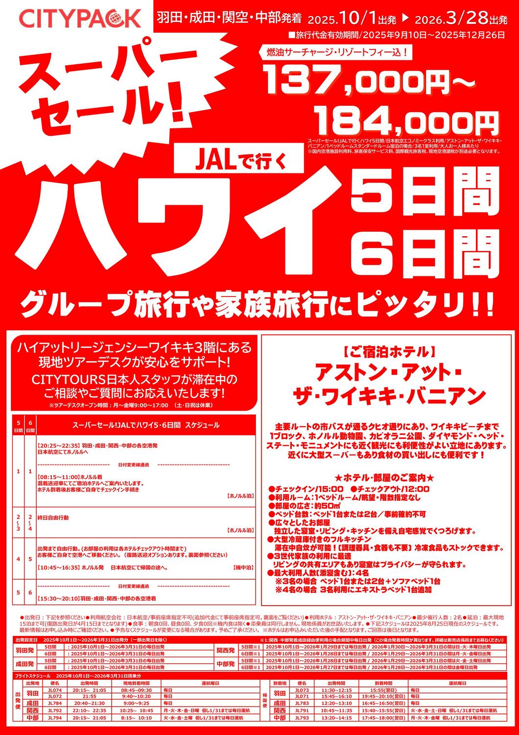 ■JALで行く!よくばりハワイ5日間 268,000円~ 燃油サーチャージ込