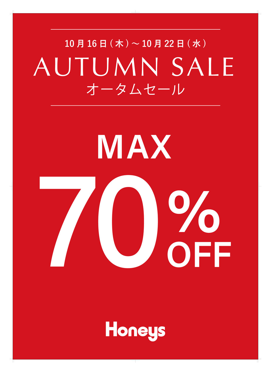【MAX70%OFF】AUTUMNセール開催のお知らせ