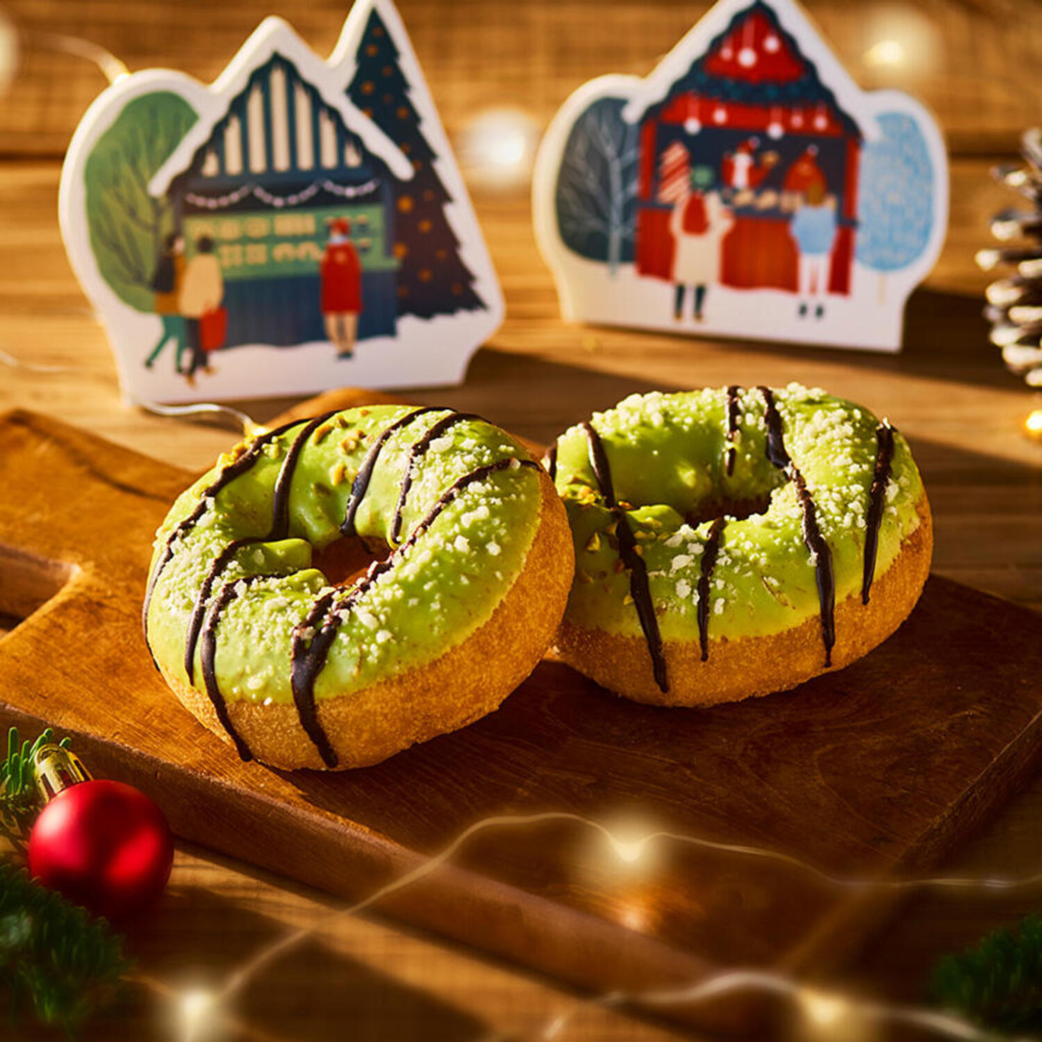 シーズナルドリンクの「タリーズドバイチョコレートラテ」に合わせた、ピスタチオが香るドーナツです。