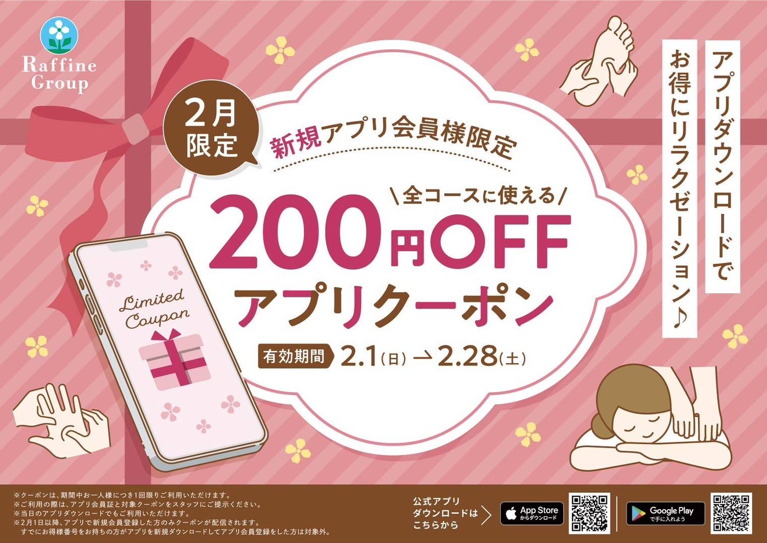 ぜひこの機会に、ラフィネグループ公式アプリをダウンロードして、癒やしのひとときをお過ごしください。